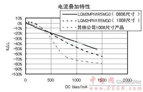 圖2:電流疊加感值特性