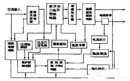 高頻開關(guān)電路主要由整流濾波電路,全橋變換電路,PWM控制電路,穩(wěn)壓、限壓電路,穩(wěn)流、限流電路,保護(hù)電路,以及輔助電源電路等組成。