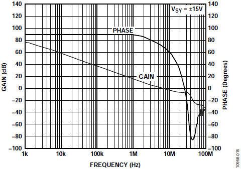 圖3. ADA4075-2開環(huán)增益和相位與頻率的關(guān)系