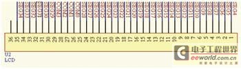 本設(shè)計(jì)采用的ST20P18單片機(jī),其內(nèi)核中自帶控制/驅(qū)動液晶模塊,該LCD(圖3)顯示模塊是8×40點(diǎn)陣,常用于遙控設(shè)備的液晶顯示。液晶顯示的主要控制引腳為COM0~COM7。本設(shè)計(jì)只用到COM0~COM3。