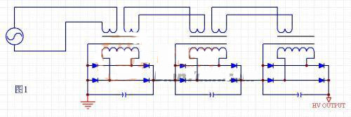 高壓電源最主要的技術(shù)特點,就是在于輸出電壓很高。高的輸出電壓對很多方面提出了特別的要求——元器件耐壓的要求、結(jié)構(gòu)設(shè)計的要求、絕緣材料的要求等。與此同時,電路結(jié)構(gòu)上也有異于通常的結(jié)構(gòu)。通常對于輸出10KV以下的電源,可以直接采用傳統(tǒng)的各種拓撲結(jié)構(gòu)。但是對于電壓更高的電源,就要對電路結(jié)構(gòu)作一些修改,以滿足更高電壓的輸出。由于變壓器初級部分的功率器件的耐壓限制,一般驅(qū)動部分依然是傳統(tǒng)的開關(guān)電源拓撲,對電路結(jié)構(gòu)的修改,主要是集中在變壓器以及后面的整流電路上。下面主要對這兩部分進行討論。