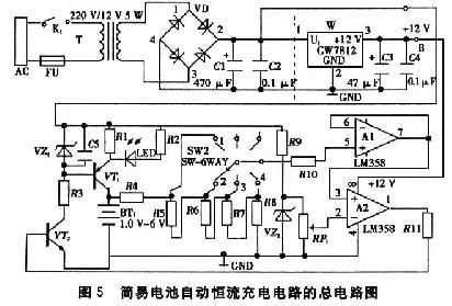 2 簡(jiǎn)易充電器總電路原理圖及元器件清單