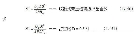 (1-176)式就是計算半橋式逆變開關(guān)電源變壓器初、次級線圈匝數(shù)比的公式。式中,N1為變壓器初級線圈N1繞組的匝數(shù),N2為變壓器次級線圈的匝數(shù),Uo輸出電壓的有效值,Ui為直流輸入電壓,Upa輸出電壓的半波平均值。