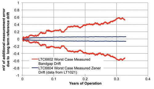LTC6804 Worst Case Measured Zener Drift (data from LT1021)