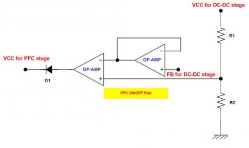 圖1:建議的實現(xiàn)PFC級間歇工作的電路
