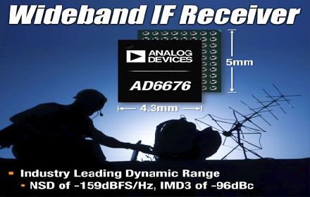 ADI最近推出單芯片寬帶IF接收器子系統(tǒng)AD6676,可讓高性能通信和儀器儀表設備的設計人員減少接收器設計的復雜性,同時實現(xiàn)頻率規(guī)劃靈活性和業(yè)界領先的瞬時動態(tài)范圍。觀看有關AD6676的視頻:www.analog.com/AD6676video。