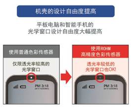 近年來,智能手機(jī)和平板電腦等配備顯示屏的設(shè)備開始搭載色彩傳感器,用來分析周圍的RGB成分,以此來自動(dòng)調(diào)整顯示屏畫面,并根據(jù)照度調(diào)節(jié)顯示器的背光。