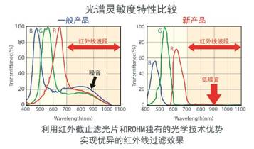 針對(duì)這個(gè)問題,ROHM利用獨(dú)有的紅外線過濾技術(shù)和計(jì)算方法等多年積累的光傳感器開發(fā)技術(shù)經(jīng)驗(yàn),全新開發(fā)出可適用于深色光學(xué)窗口的色彩傳感器。