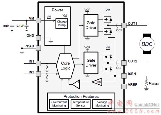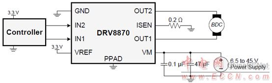 圖2.DRV8870應(yīng)用框圖