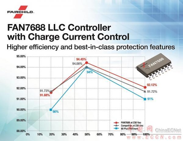 全球領(lǐng)先的高性能功率半導(dǎo)體解決方案供應(yīng)商Fairchild (NASDAQ: FCS)今天推出了新產(chǎn)品FAN7688,這是一款高級LLC控制器,帶同步整流(SR)功能,為隔離DC-DC轉(zhuǎn)換器提供了非常高的效率。FAN7688的獨特功能和優(yōu)異效率使得制造商能夠大大提高服務(wù)器、電信、工業(yè)、PC和TV應(yīng)用電源的可靠性和效率。