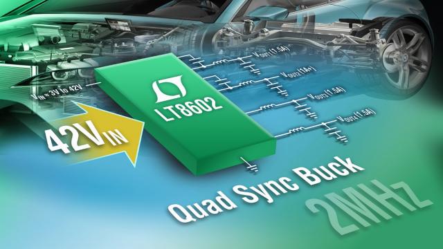 凌力爾特的 LT8602 是一款 42V 輸入、高效率、4 輸出單片同步降壓型開關(guān)穩(wěn)壓器。其 3V 至 42V 輸入電壓范圍使該器件非常適合汽車應用,這些應用必須穩(wěn)定地通過最低輸入電壓低至 3V 的冷車發(fā)動和停-啟情況以及超過 40V 的拋載瞬態(tài)。正如我們在圖 1 中所能看到的那樣,其 4 通道設計提供 4 個獨立輸出,高壓 2.5A 和 1.5A 通道以及兩個較低電壓的 1.8A 通道,可提供低至 0.8V 的電壓,從而使該器件能夠驅(qū)動現(xiàn)有之電壓最低的微處理器內(nèi)核。其同步整流拓撲具備高達 94% 的效率,而突發(fā)模式 (Burst Mode®) 工作在無負載備用情況下保持靜態(tài)電流低于 30µA (所有通道均接通),從而使該器件非常適合始終保持接通的系統(tǒng)。