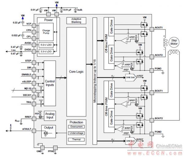 圖2.DRV8885 PWM馬達(dá)驅(qū)動器框圖