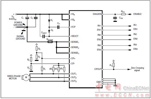 圖2.L6230磁場定向控制(FOC)應(yīng)用電路