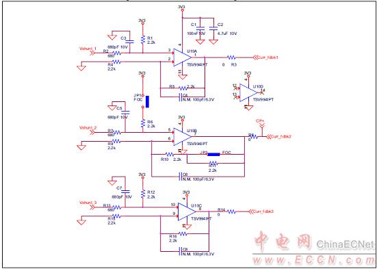 圖7.馬達控制平臺P-NUCLEO-IHM001電路圖:電流檢測調(diào)理電路