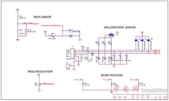 圖8.馬達控制平臺P-NUCLEO-IHM001電路圖:傳感器和并聯(lián)電阻電路