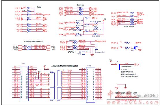 圖10.馬達控制平臺P-NUCLEO-IHM001電路圖:STM32 MCU引腳
