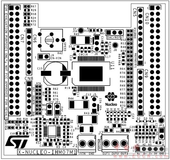 圖11.馬達控制平臺P-NUCLEO-IHM001 PCB頂層元件布局圖 |