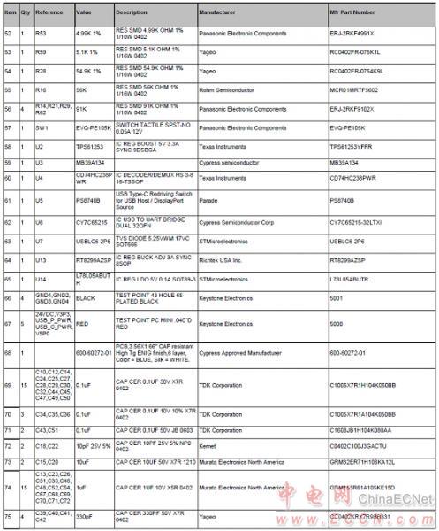 CY4541 EZ-PD™ CCG4評估套件(EVK)材料清單: