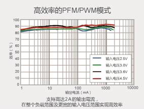 該模式在負(fù)載變動時可自動切換PFM和PWM,從而在整個負(fù)載范圍內(nèi)可實現(xiàn)達(dá)90%的高效率。非常適用于智能手機(jī)和平板電腦等工作切換頻繁、重視效率的應(yīng)用。