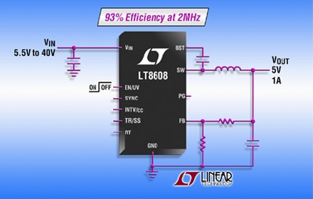 Linear推出1.5A、42V 輸入同步降壓型開關(guān)穩(wěn)壓器 LT8608。該器件采用獨特的同步整流拓撲,在 2MHz 切換時可提供 93% 的效率,從而使設(shè)計師能夠避開關(guān)鍵噪聲敏感頻段 (例如 AM 無線電頻段),同時實現(xiàn)占板面積非常緊湊的解決方案。突發(fā)模式 (Burst Mode®) 工作在無負載的備用情況下可保持靜態(tài)電流低于 2.5µA,從而使該器件非常適合始終保持接通的系統(tǒng)。其 3V 至 42V 輸入電壓范圍非常適合汽車應(yīng)用,因為這類應(yīng)用必須在冷車發(fā)動和車輛停-啟場合以及最小輸入電壓低至 3.0V 和拋載瞬變超過 40V 的情況下進行調(diào)節(jié)。其內(nèi)部 2A 開關(guān)能夠提供高達 1.5A 的連續(xù)輸出電流。LT8608 可在所有情況下保持僅為 200mV (在 500mA) 的最低壓差電壓,從而能夠在汽車冷車發(fā)動等情況下有出色表現(xiàn)。擴展頻譜頻率調(diào)制和特殊設(shè)計技術(shù)提供了低 EMI 工作,以在汽車和工業(yè)環(huán)境中最大限度地減輕噪聲問題。此外,快速的最短接通時間僅為 45ns,這使該器件在 16V 輸入至 1.5V 輸出時能夠以 2MHz 恒定頻率切換。LT8608 的 10 引線耐熱性能增強型 MSOP 封裝和高開關(guān)頻率允許使用小型外部電感器和電容器,從而構(gòu)成了占板面積緊湊和高熱效率的解決方案。