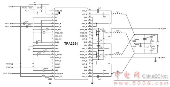 圖5.TPA3251差分(2N)PBTL應(yīng)用電路圖