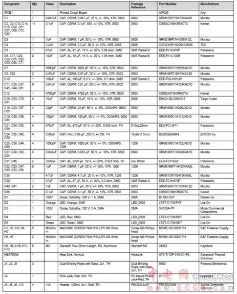評(píng)估板TPA3251D2EVM材料清單(BOM):