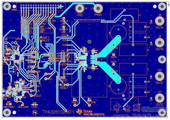 圖11.評(píng)估板TPA3251D2EVM PCB設(shè)計(jì)圖(1)