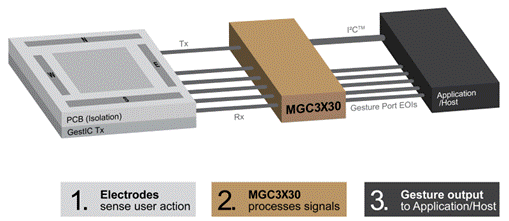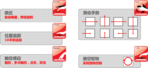 其中比較有代表性的,要數(shù)Microchip公司的GestIC技術。它基于電場感應的原理,在電子設備周邊的空間中形成一個電場。當手部在空間中運動時會使電場發(fā)生畸變,布設在電場中的電極接收器會感應到這種變化,并通過專門的控制芯片進行信號處理,對手勢進行識別和運動追蹤,并將數(shù)據(jù)傳遞給電子設備做出響應。Microchip代理商世健公司產(chǎn)品經(jīng)理介紹,與采用攝像頭的光學3D手勢識別技術相比,GestIC技術最大的優(yōu)勢在于功耗極低,能耗節(jié)省多達90%,同時能避免環(huán)境光等外部因素的干擾,雖然是一個近場識別技術,但其在家庭自動化、家電控制、音響系統(tǒng)、電腦及配件、汽車電子等方面,會有諸多應用場景。