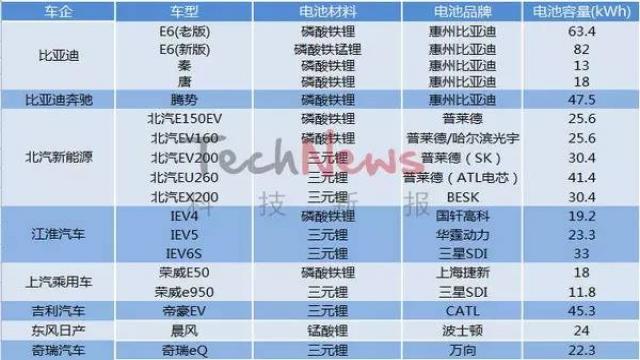 其中,北汽、上汽以及吉利汽車走得是磷酸鐵鋰電池以及三元鋰電池”二者兼修”的路線,出于續(xù)航考慮,這些車企更加偏愛三元鋰電池。