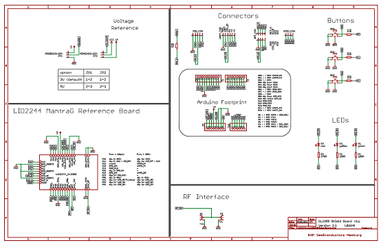 The OM2385/SF001 consists of a base board (the OL2385 shield board) with a permanently attached daughter board (the OL2385 reference design board). The combination—along with the attached FRDM-KL43Z board—serves as a development platform that provides wireless modem access to the SIGFOX network. Once properly registered, the board allows users to send and receive messages across the network.