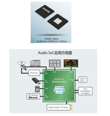 全球知名半導體制造商ROHM面向從傳統(tǒng)的收錄機、CD組合音響到最新的藍牙音箱、USB-DAC等各種音頻設備,開發(fā)出可播放所有常見音源、并將控制管理外圍部件和輸入輸出接口的機構(gòu)(可稱為音響應用的大腦)集成于一枚芯片的支持高分辨率*1的Audio SoC*2“BM94803AEKU”。