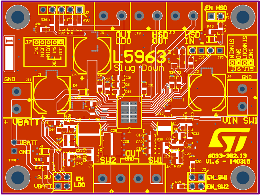圖9.評(píng)估板EVAL-L5963 PCB設(shè)計(jì)圖 |