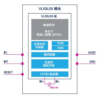 VL53L0X包含基于一個(gè)SPAD(單光子雪崩二極管)感應(yīng)器陳列和一個(gè)符合人體一級(jí)安規(guī)的VCSEL(垂直腔面發(fā)射激光器)的集成940nm光源,與嵌入式微控制器上運(yùn)行的算法一起使用時(shí),可以直接確定以毫米為單位的目標(biāo)物體的距離,即使是在具有挑戰(zhàn)性的工作條件下,并且與目標(biāo)反射率無(wú)關(guān)。VL53L0X采用一個(gè)超低功耗的系統(tǒng)架構(gòu),非常適合用于無(wú)線和IoT應(yīng)用。VL53L0X具有完整的文檔包,例如源代碼和軟件API(應(yīng)用編程接口),它與廣發(fā)的微控制器和處理器兼容。