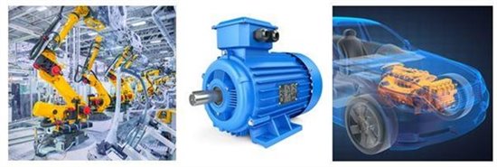 旋變以上的特性使其成為工業(yè)、汽車應(yīng)用中最理想的傳感器之一,如圖5所示。在工業(yè)應(yīng)用中,旋變廣泛應(yīng)用于伺服控制系統(tǒng)(如電梯)、工業(yè)機(jī)器人、交流變頻驅(qū)動(dòng)、塑壓系統(tǒng)、紡織系統(tǒng)、冶金系統(tǒng)等。在汽車應(yīng)用中,旋變廣泛應(yīng)用于電動(dòng)、混合動(dòng)力汽車的牽引逆變器、暖通空調(diào)系統(tǒng)、起停發(fā)電機(jī)和助力轉(zhuǎn)向系統(tǒng)等。