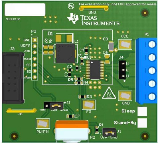 圖4.評估模塊DRV10987 EVM PCB打印圖