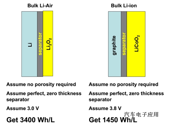 2)高體積比能量——以乘用車為代表的電動汽車對于電池體積有嚴(yán)格的要求,此時電池不僅要輕,還要小,要能“塞”入汽車。而對于包括鋰空電池的很多新興電池技術(shù)來說,它們的體積相關(guān)的參數(shù)常常是非常不理想的——因?yàn)槌3J褂玫氖堑兔芏取⒏呖紫堵实牟牧象w系。因此如果不考慮這些參數(shù),他們可能本質(zhì)上更適合于對于體積要求不高的固定式儲能場合,但是此時對于能量轉(zhuǎn)換效率要求就會更加苛刻,所以似乎境遇有一些兩難。