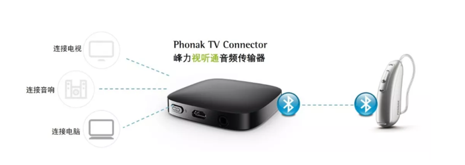 視聽(tīng)通可在15米內(nèi)與助聽(tīng)器自動(dòng)對(duì)接,可與電視機(jī)揚(yáng)聲器并列輸出音頻,便于全家視聽(tīng)。即插即用無(wú)需軟件安裝,支持與電視、音響、電腦各種設(shè)備的連接。