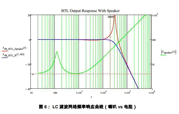 由于LC濾波器的Q值和負(fù)載R有關(guān),只有當(dāng)R非常大的時候才會出現(xiàn)高次諧波被放大的現(xiàn)象。在實(shí)際中負(fù)載R是動圈式喇叭。關(guān)于喇叭阻抗R和頻率的關(guān)系在下節(jié)中給出。