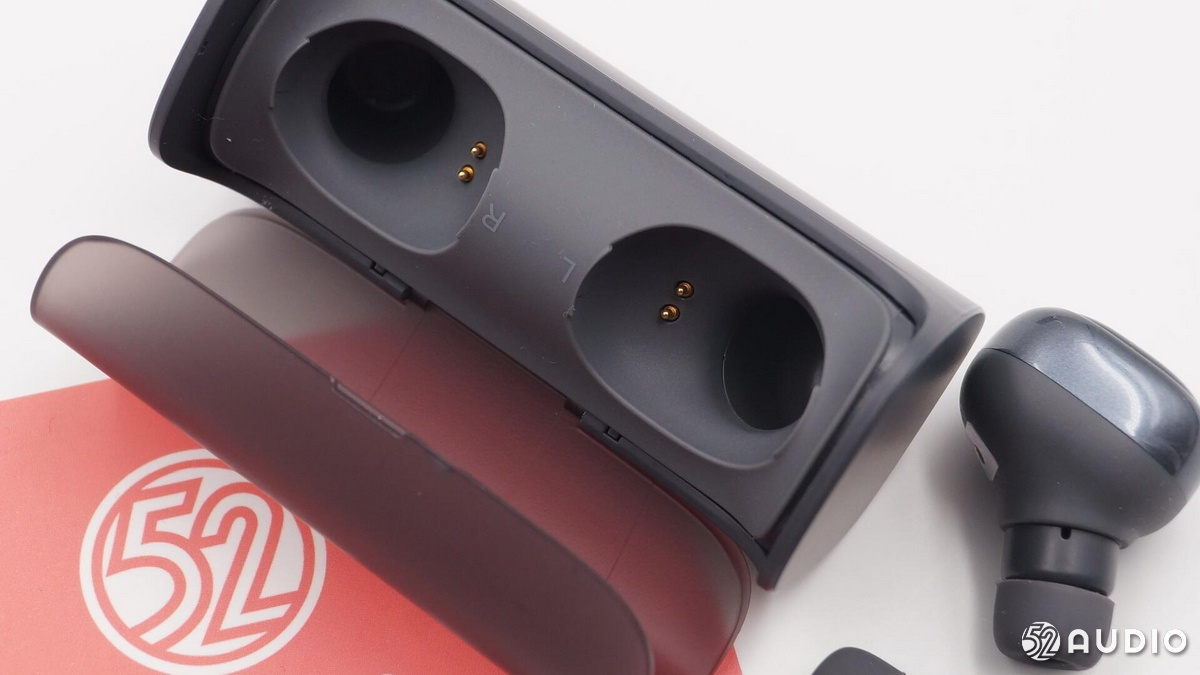 來自德國的產(chǎn)品,Qualcomm高通CSR8670方案,主副耳機之間采用NFMI傳輸實現(xiàn)TWS,耳機采用單動鐵驅(qū)動,充電盒內(nèi)無電池,電源管理芯片直接集成在耳機內(nèi)。