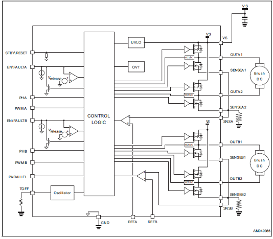 STSPIN840兩個雙向有刷DC馬達(dá)同時驅(qū)動方案