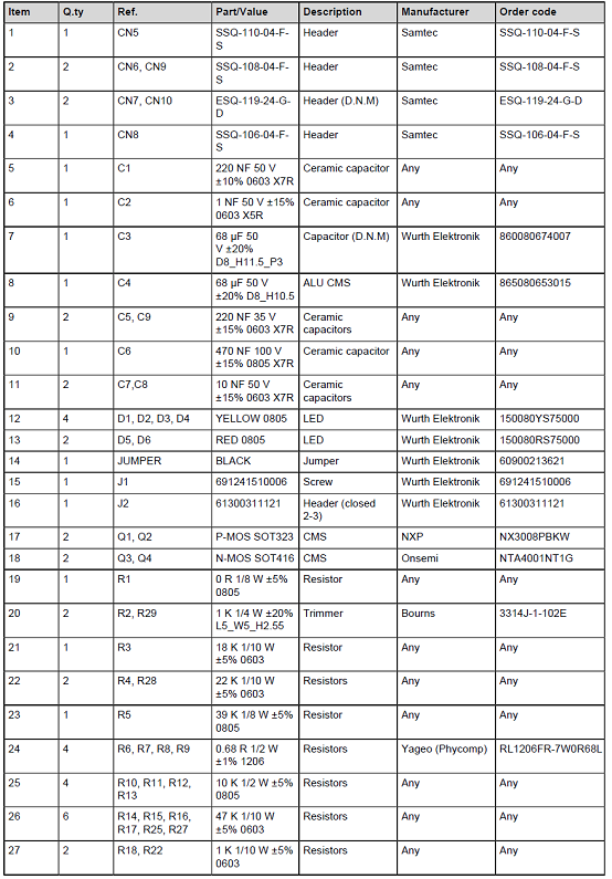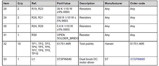 馬達(dá)驅(qū)動擴(kuò)展板X-NUCLEO-IHM15A材料清單: