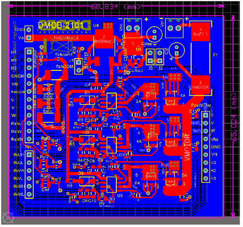 DMDB2101 is designed to serve as a generic power stage for BLDC and stepper motor driving. This board is designed to work with all the mainstream MCU for motor control applications. Onboard voltage regulators provide necessary voltages rails to the MCU and the hall effect sensors. DMDB2101 is designed to work with MCU using both the back-EMFcontrol algorithm and/or hall-effect sensor input. The modular approach of the board means itcan be easily integrated with different MCU boards and motor units making the developmentprocess fast and easy.