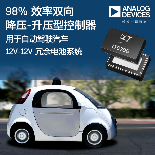 Analog Devices, Inc (ADI)宣布推出 Power by Linear™ LT8708/-1,這款效率達(dá) 98% 的雙向降壓-升壓型開關(guān)穩(wěn)壓控制器在兩個(gè)具有相同電壓的電池之間運(yùn)行,非常適合在自動(dòng)駕駛汽車中提供冗余電源。LT8708/-1 利用一個(gè)輸入電壓供電運(yùn)行,該輸入電壓可以高于、低于或等于輸出電壓,這使其十分適合電動(dòng)汽車和混合動(dòng)力汽車中常見的兩個(gè)各為 12V、24V 或 48V 的電池。該器件在兩個(gè)電池之間運(yùn)行,可避免在其中一個(gè)電池出現(xiàn)故障的情況下發(fā)生系統(tǒng)停機(jī)。另外,LT8708/-1 還可在 48V/12V 和 48V/24V 雙電池系統(tǒng)中使用。