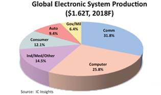 整體來看,2018年全球電子系統(tǒng)的市場價值可望達到1.62兆美元。該公司并預期汽車電子系統(tǒng)將占9.4%,略高于去年的9.1%。