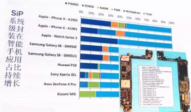目前蘋果產(chǎn)品在系統(tǒng)級(jí)封裝領(lǐng)域已經(jīng)走在了行業(yè)前列,其手機(jī)產(chǎn)品中采用到系統(tǒng)級(jí)封裝的元器件幾乎占到了整個(gè)產(chǎn)品的一半,剩下的一半為晶圓級(jí)封裝。模塊化產(chǎn)品設(shè)計(jì)已經(jīng)成為蘋果公司的標(biāo)配;他的這一動(dòng)作,為封裝行業(yè)的發(fā)展指明了道路,也影響了行業(yè)的產(chǎn)品設(shè)計(jì)走向,目前三星、華為、索尼、小米等企業(yè)也在慢慢往系統(tǒng)級(jí)封裝領(lǐng)域靠攏。
