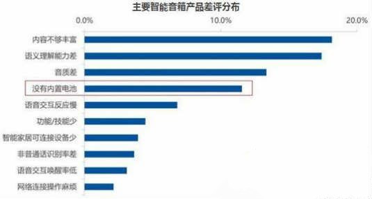 據(jù)行業(yè)媒體對主流電商平臺重點智能音箱品牌的消費者評價數(shù)據(jù)顯示,沒有內(nèi)置電池是用戶差評的第四大原因,占比高達11.6%。