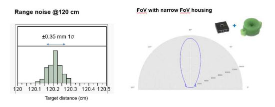 圖 2:CH-201 型傳感器的距離噪音僅為傳統(tǒng)紅外 ToF 傳感器的百分之一(左圖)。