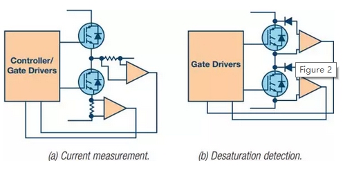 無論出于財產(chǎn)損失還是安全方面的考量,針對過流條件的IGBT保護都是系統(tǒng)可靠性的關(guān)鍵所在。IGBT并非是一種故障安全元件,它們?nèi)舫霈F(xiàn)故障則可能導(dǎo)致直流總線電容爆炸,并使整個驅(qū)動出現(xiàn)故障。過流保護一般通過電流測量或去飽和檢測來實現(xiàn)。