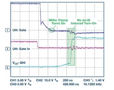 圖9顯示了正常工作時,米勒箝位防止逆變器直通的價值。