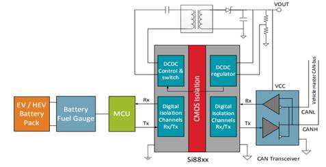 比如在電源管理系統(tǒng)應(yīng)用中,針對電池端以及CAN通信總線端進(jìn)行隔離。